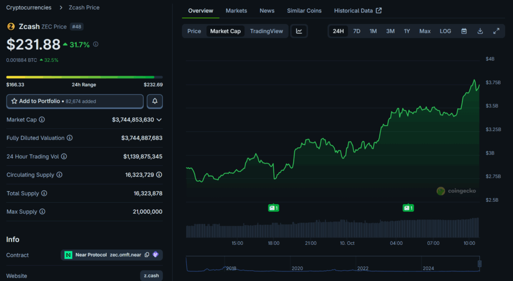 Even as liquidity thins across other alts, ZEC maintains active spot and derivatives markets — highlighting investor confidence.