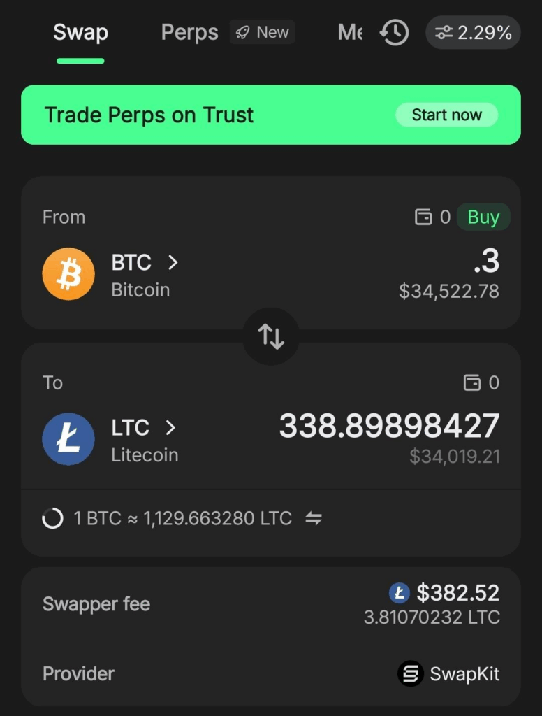 Now, thanks to SwapKit’s multi-provider cross-chain routing, you can easily swap in and out of Litecoin natively through any SwapKit-powered app — connecting LTC liquidity across ecosystems like Bitcoin, Ethereum, Solana, Arbitrum, and beyond.
