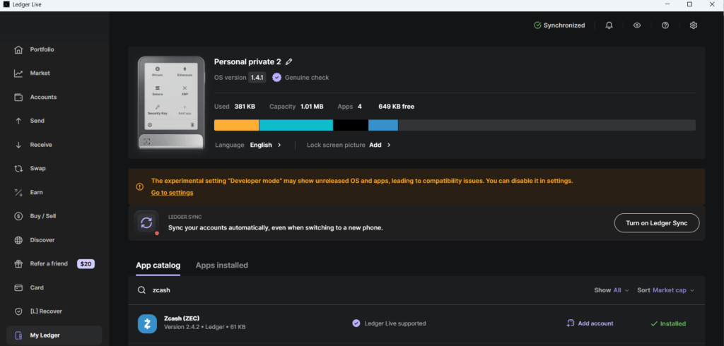 For beginners, the easiest and safest way to manage ZEC is through a Ledger hardware wallet.
