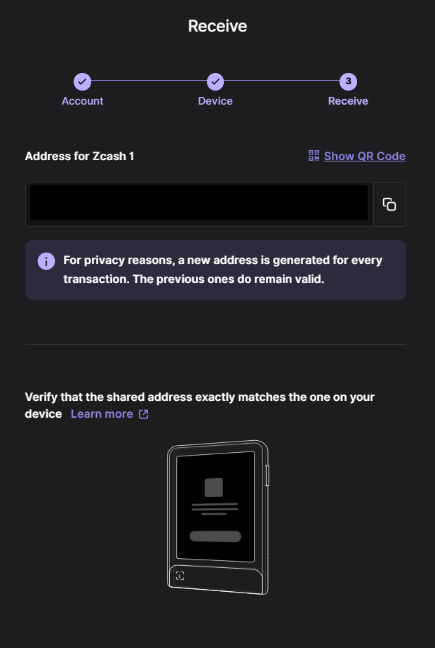 - You’ll receive a transparent Zcash address (shielded support coming later).
